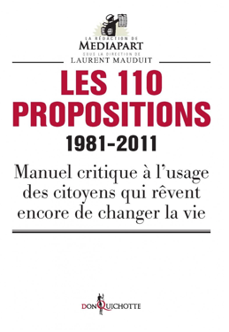 Pour dresser un bilan, trente ans après, des réformes promises en 1981 par les socialistes, et consignées dans une plateforme connue sous le nom des « 110 propositions », la rédaction de Mediapart a également écrit un ouvrage collectif. Intitulé Les 110 Propositions, 1981-2011 (Editions Don Quichotte, 168 pages, 9,90 euros), il est assorti d'un sous-titre qui résume son ambition : «Manuel critique à l'usage des citoyens qui rêvent encore de changer la vie».